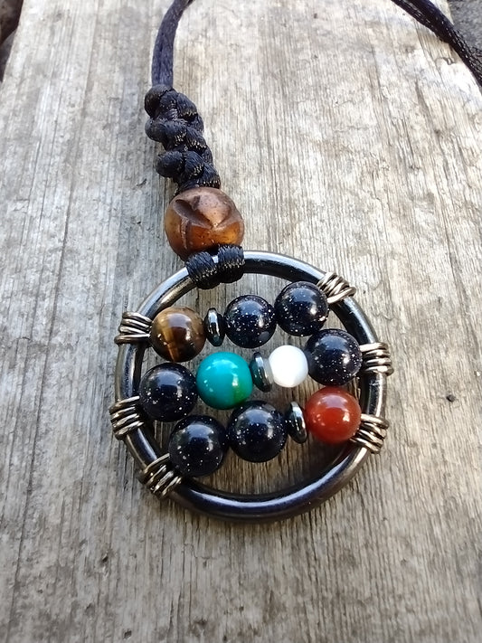 Blue Agate w/Mood Bead Sun Cross Fidget
